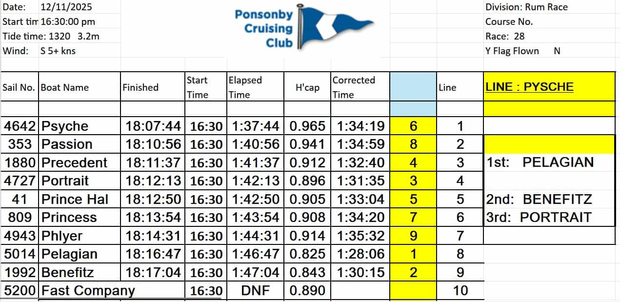 2024 - 2025 RUM RACE Results