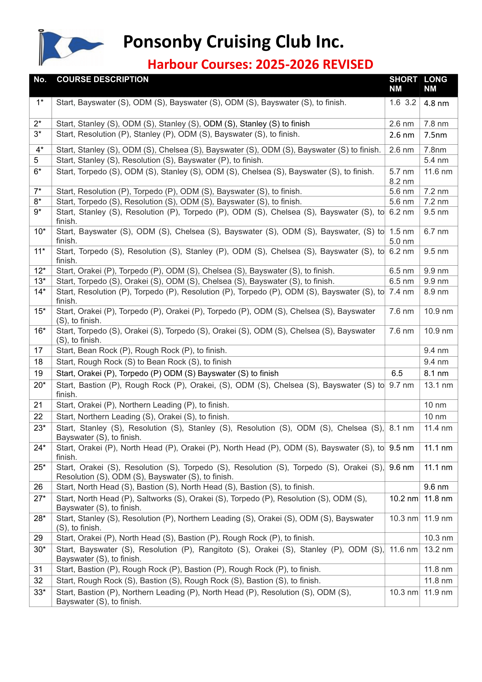 Harbour Courses 2025/26